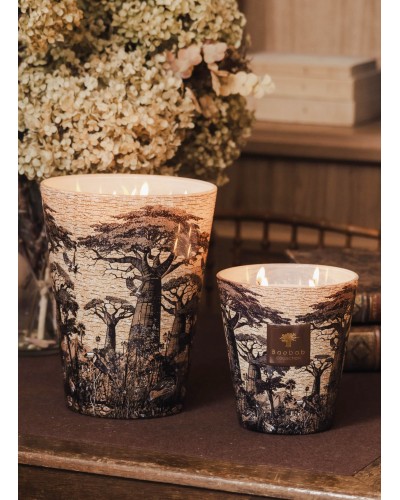 La bougie parfumée Mankono porte le nom de la région du nord de la Côte d’Ivoire où nous poursuivons nos actions sociales et écologiques. Son verre est habillé d’un imprimé exclusif, dessiné par les artistes d’Uniwax – maison emblématique d’impression de textiles africains – qui se place harmonieusement sur le verre, tout en prenant vie sous la flamme grâce à l’expertise de la sublimation. Les tons bruns et jaunes safran du dessin sur le verre sont en accord parfait avec son parfum boisé et épicé. La bougie devient un objet décoratif ethnique, suivant dans son allure l’ADN de notre marque.