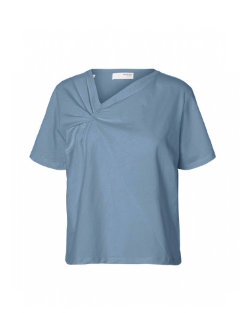 T-shirt coupe normale. Bleu. Manches courtes. 100% coton bio.